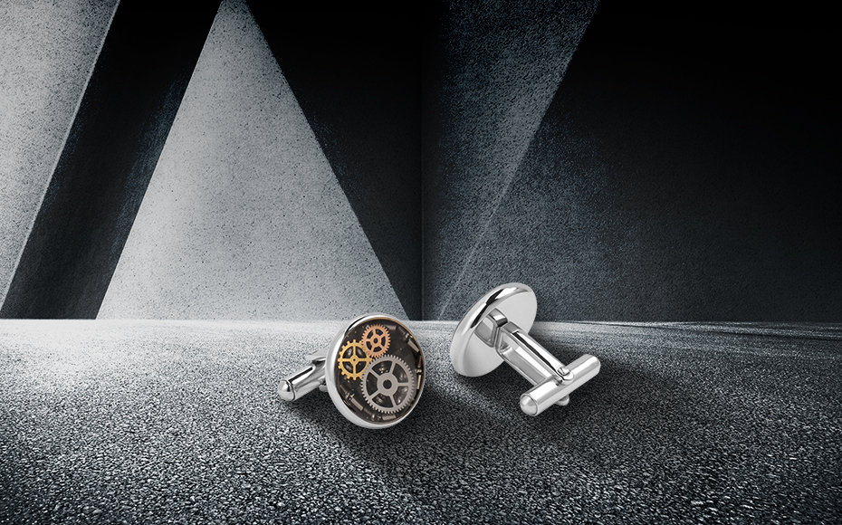 High polished round watch movement suit shirt cufflinks stainless steel